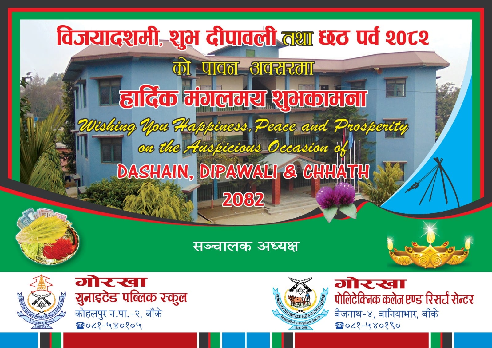 Uncategorized गोरखा युनाइटेड पब्लिक स्कुल कोहलपुरको दशैँ,तिहार लगायतका पर्वको शुभकामना root Oct 14, 2025 0 पूरा पढ्नुहोस्