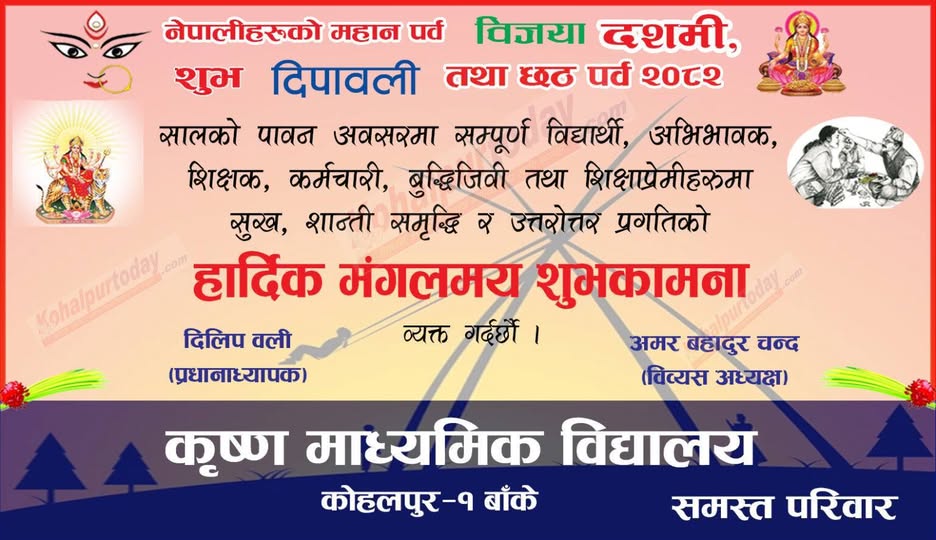 कोहलपुर बागेश्वरी इ .मि. स्कुल बाँके जिल्ला स्तरीय एन्फा अन्डर –१४ विद्यालय फुटबल प्रतियोगितामा उपविजेता बनेको छ । सिद्धार्थ विद्या…