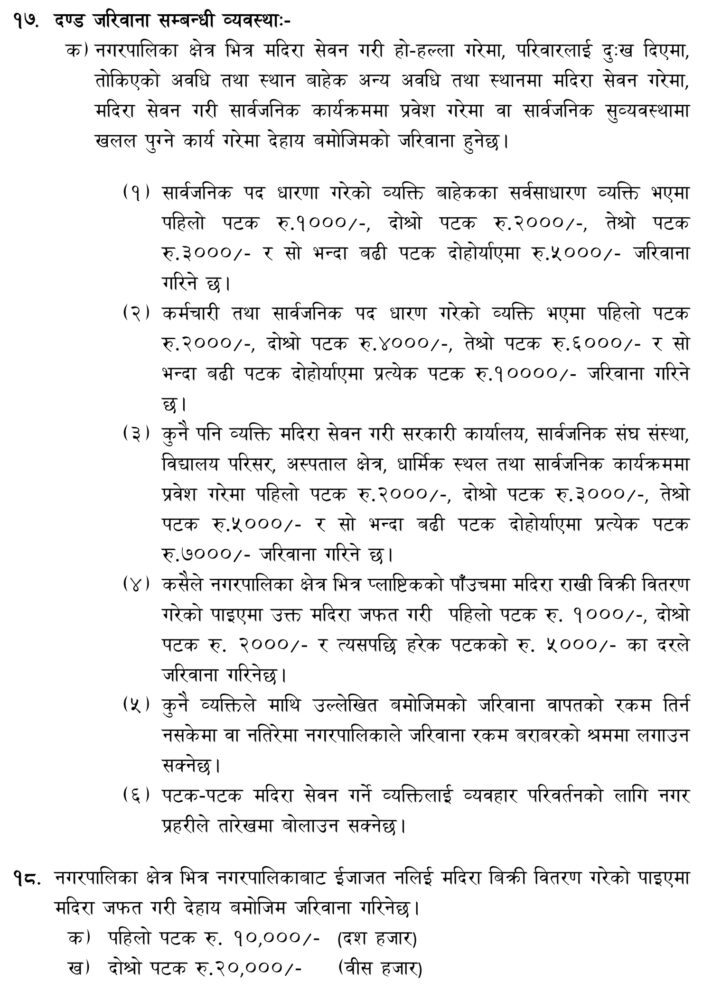 कोहलपुर / ‘कोहलपुर नगरपालिका मदिरा नियन्त्रण तथा व्यवस्थापन सम्बन्धी कार्यविधि २०७९’ अनुसार विद्यालय क्षेत्रको ५० मिटर वरीपरी मदिरा र सुर्ती बेच्न नपाउने भएका छ ।