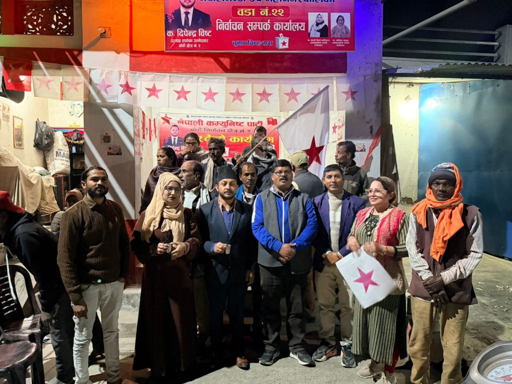 आगामी फागुन २१ गते हुने प्रतिनिधि सभा सदस्य निर्वाचनमा नेपाली कम्युनिष्ट पार्टीका उम्मेदवार दिपेन्द्र बिष्टको चर्चा र सक्रियता बढ्दो छ । उनले दैनिक दर्जन बढि कार्यक्रमहरू गरि रहेका छन । दैनिक बिभिन्न जेन जि युवा समूहहरू , व्यवसायी , स्कुल कलेजका विद्यार्थी र स्थानीय सँग अन्तरक्रिया गरि रहेका छन । सो क्रममा उनले उनीहरूको गुनासो सुन्ने र आगामी दिनमा समस्या समाधानको प्रतिबद्धता समेत जनाएका छन । सो क्रममा उनले आइतबार नेपालगन्ज उपमहानगरपालिका वडा नं। २२ पुरैनीमा चुनावी सम्पर्क कार्यालयको भव्य उद्घाटन सम्पन्न भएको छ। कार्यक्रममा प्रतिनिधि सभा सदस्य पदका उम्मेदवार दिपेन्द्र बिष्ट लगायत नेता कार्यकर्ता र स्थानियको सहभागिता रहेको थियो ।