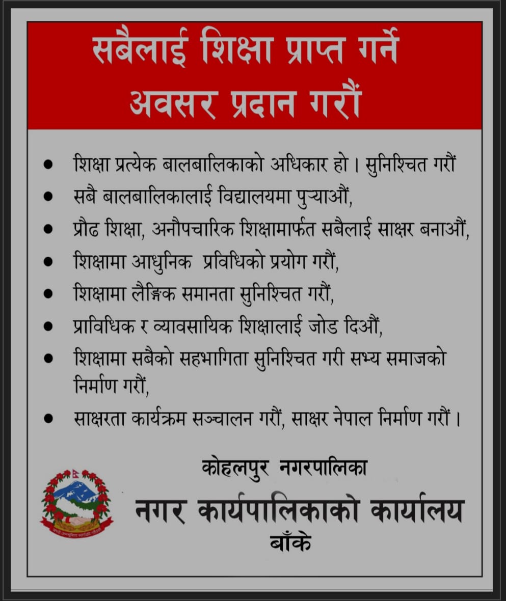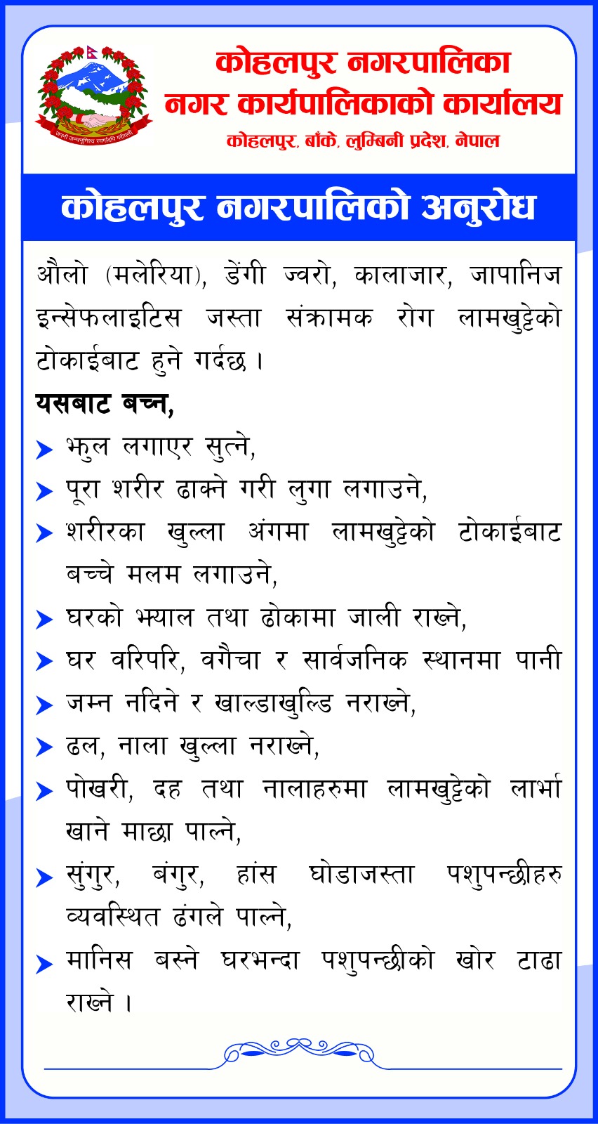 कोहलपुर नगरपालिका बाट जनहितमा जारी सन्देश
