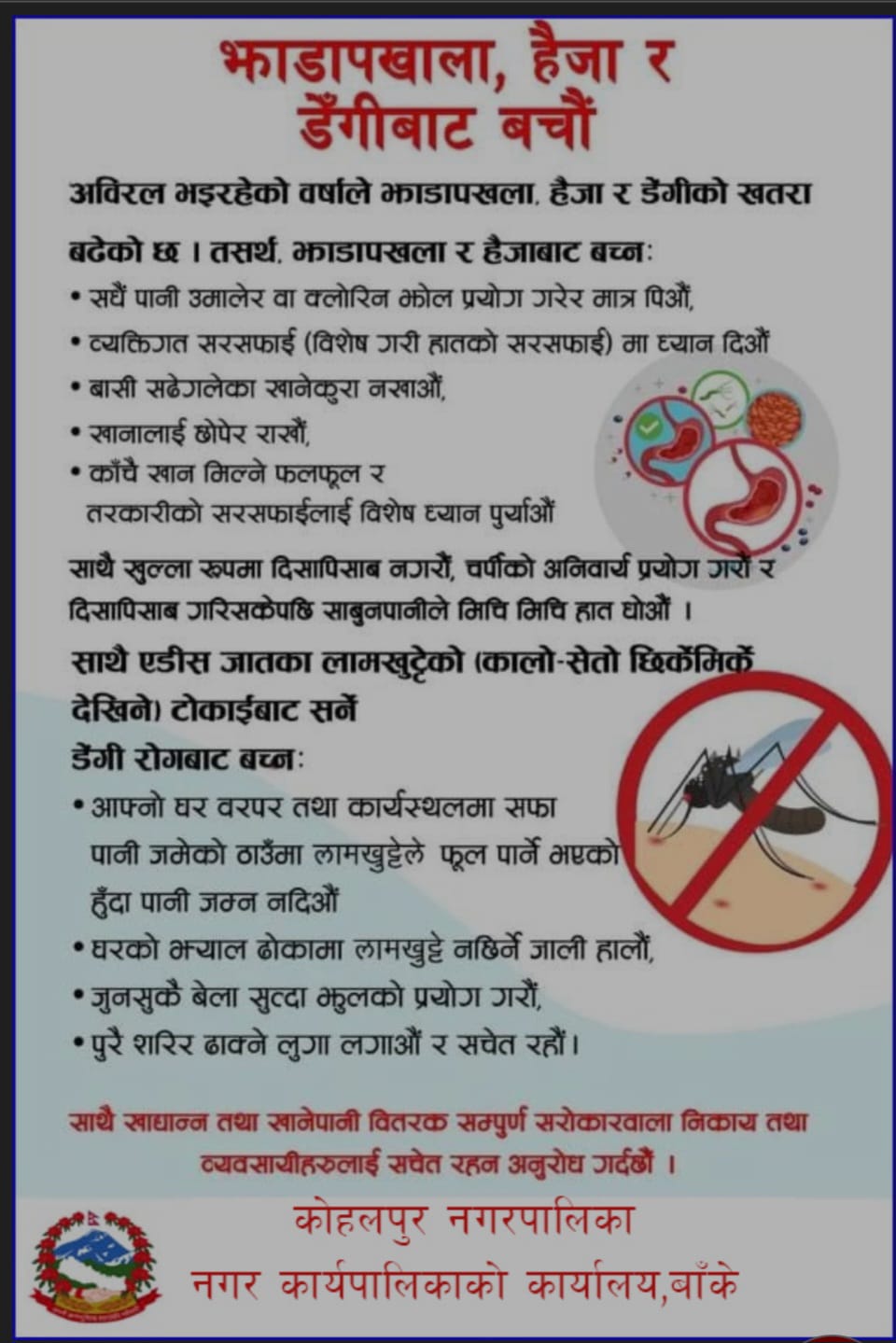 कोहलपुर नगरपालिका नगर कार्यपालिका द्धारा झाडा पखाला बाट बच्ने बारे नगरवासीमा अनुरोध